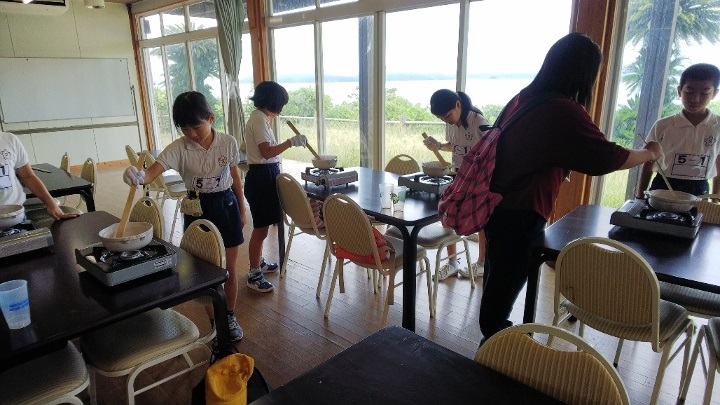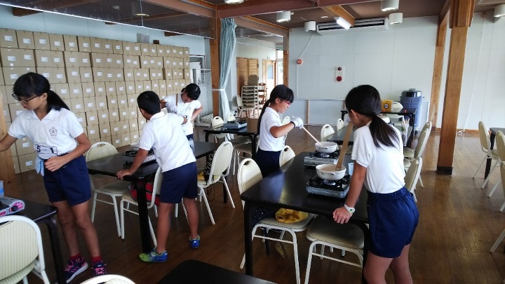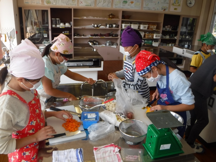 1018()の2・3・4時間目の時間に、家庭科で調理実習を行いました。5年生になって2回目の調理実習ということで、1学期に比べると短時間で調理することができていました。今回の調理実習では、ご飯とおみそ汁を作りました。ご飯は自分たちでお米を洗い、水をはかって、火加減を見ながら炊きました。おみそ汁作りでは、煮干しと鰹節でだしをとり、班ごとに決めた具材を使って作りました。どの班も具材がよく煮えていて、味もよかったです。今回の実習を生かして、お家でのお手伝いに生かしてください。
