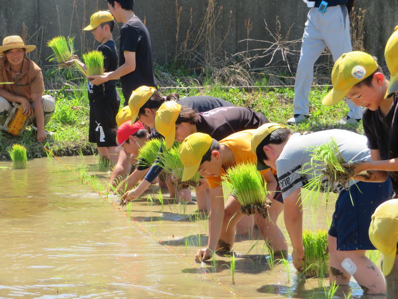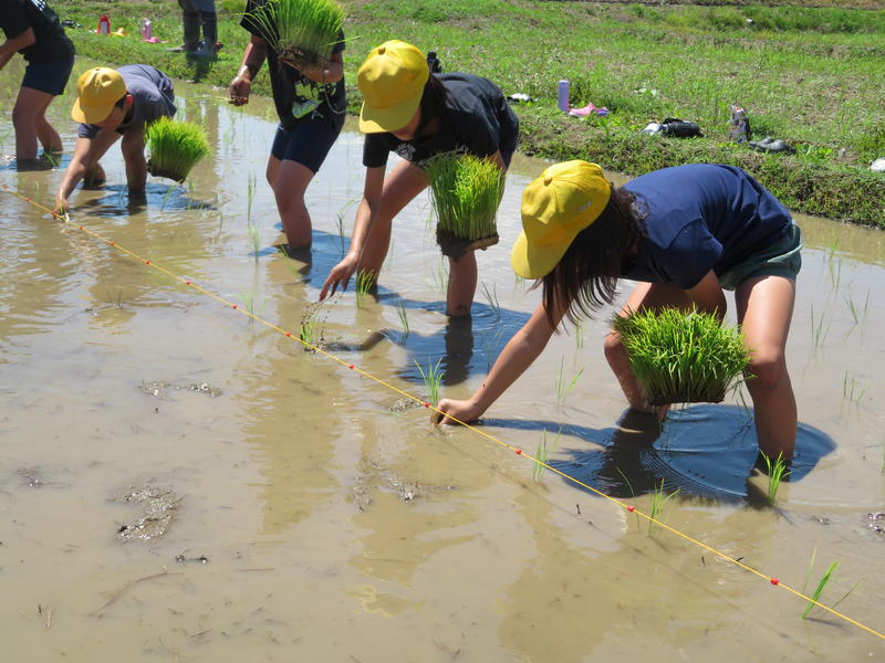 今年度も地域の方々にご協力いただき、5年生は田植えを行いました。