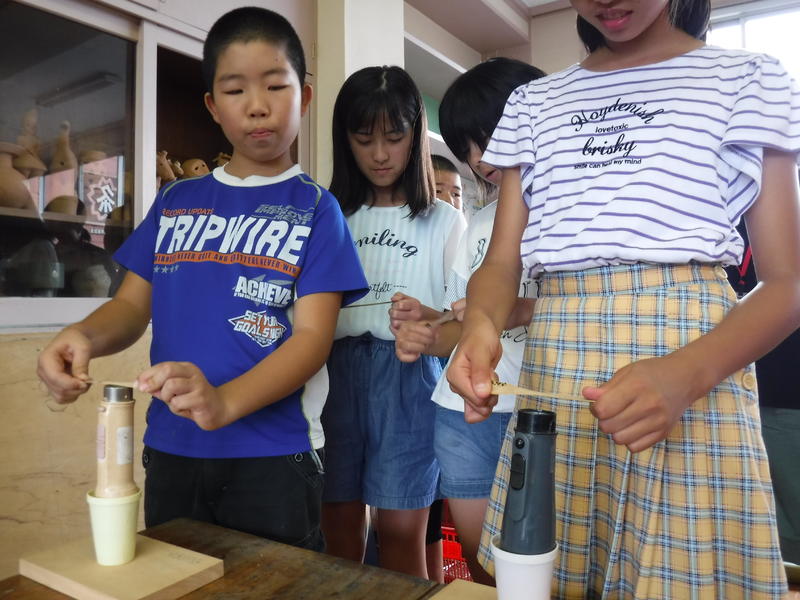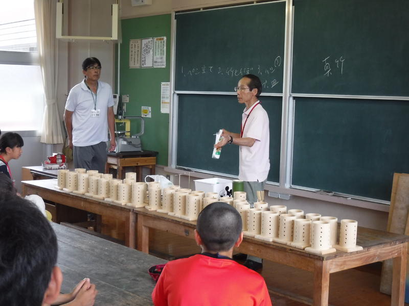 北海道南幌町児童交流学習事業が久米小学校でありました。「夢工房」の宮本さんに来ていただき、普段はなかなか体験できない竹とんぼ作りやペン立て作り、お椀や箸作りを体験しました。多良木町の児童も南幌町の児童も興味津々な様子で、作り方の説明を聞き、熱心に活動していました。