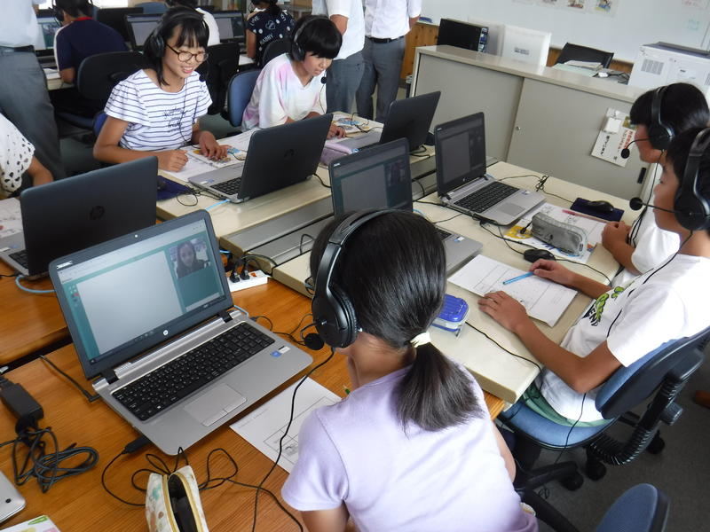 久米小学校で初めてオンライン英会話が実施されました。これまでALTの先生たちと一緒に学習してきた外国語を活用しながら、画面越しに1対1で英語だけを使って外国の方と会話しました。自己紹介に始まり、様々なやりとりを繰り返す中、緊張していた子どもたちの顔もだんだん笑顔になっていきました。