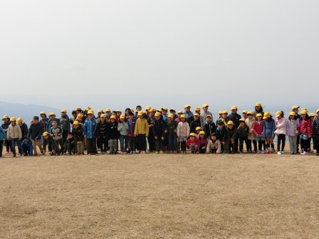 妙見野まで片道4.4㎞の山道でしたが、全員元気よく登りきることができました。妙見野では、5年生が考えたレクリエーショ
