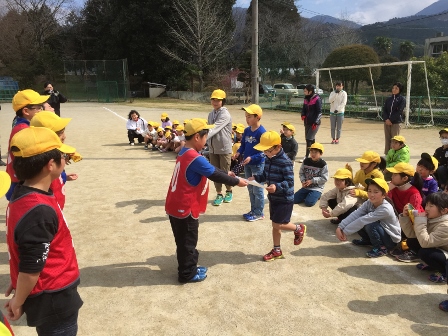 は鬼ごっこです。今年度最後の全校レクレーションも盛り上が