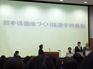 熊本県健康づくり推進学校表彰式で、久米小学校が優秀校と