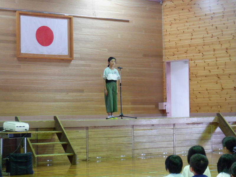 全校児童の前で発表した代表児童は、発表前は緊張が見られましたが、発表が始まると堂々とした声で発表することができ、これまでの練習の成果が十分に発揮された校内童話発表会となりました。