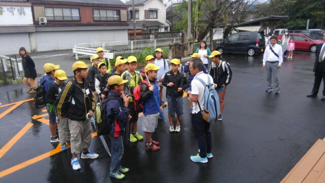 小雨なので、バスの中での出発式でしたが、全員そろって、元気に出発しました。