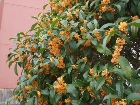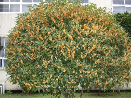 中庭にキンモクセイが2本ありますが、そのうちの1本が満