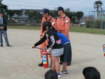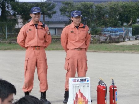 防署の方に来ていただき、避難の際の注意事項や消火器の使い