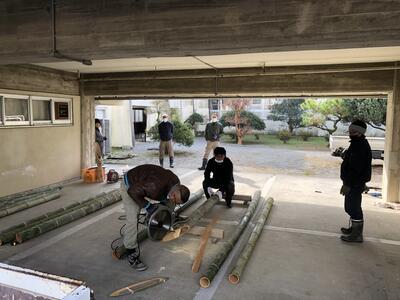 保護者の方々が、朝早くから、竹を切りに行ってくださったり、