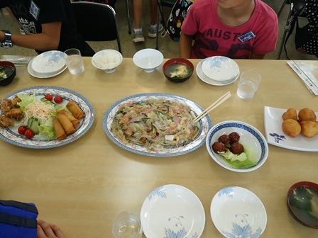 昼食に、長崎名物「皿うどん」や愛野町名物「じゃがちゃん」を食べ