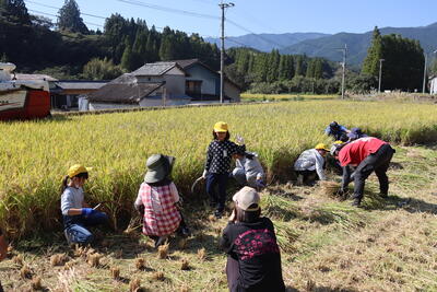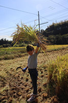 6月に植えた田んぼの餅米が収穫時期を迎えたので稲刈りに行ってきました。