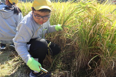 21日(月)に稲刈りをしました。コンバインで1周ずつ刈らせていただきました。子ども達はコンバインを乗りこなしていました。その後、手刈りをしました。鎌の使い方も上手でどんどん刈ることができました。昨年と同じくらい収穫できたようです。保護者の皆様、地域の皆様、ありがとうございました!