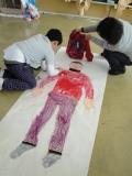 等身大の絵に色をぬるのは大変ですが、洋服の模様など細かいところまで頑張って描いています。