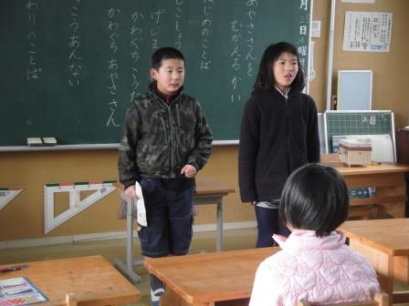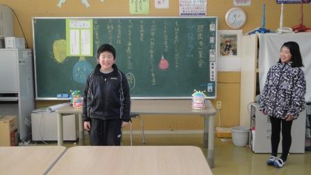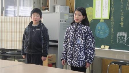 この1年間の活動を2人で発表し、分校を修了する4年生は分校での思い出とお世話になった方々への感謝の気持ちを伝えました。