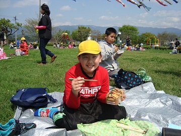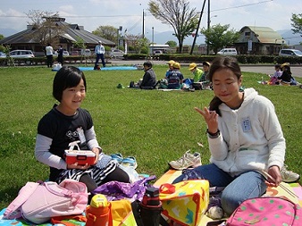 待ちに待った昼食では、みんなと一緒にお弁当を食べました。昼食を食べたあとは友達と一緒に遊んだり遊具で遊んだり、思い思いの楽しい時間を過ごしました。天気が心配されましたが、皆の願いが通じてなんとか持ちこたえたので良かったです