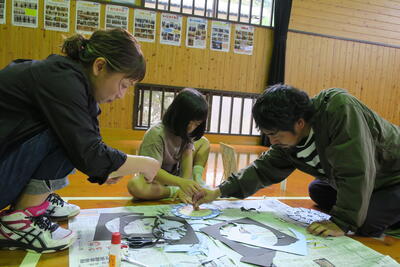 運動会部では、記念誌の表紙に掲載する人文字について協議していました。
