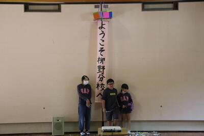この日のために、3・4年生が今まで調べた柳野のことについて準備してきたプレゼンで紹介しました。