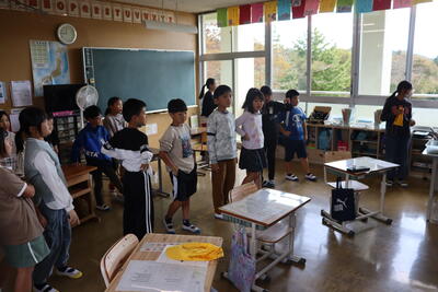 10月17日(火)本校の3年生が柳野分校(含柳野地区)についての学習で分校へやって来ました。