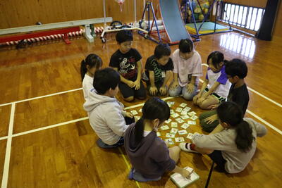 食後は、体育館でカルタ取りをしました。