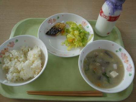今日は、今月のふるさとくまさんデーでした。今月の食材は『しし肉』です。しし汁としてメニューに出されていました。味噌味でたべやすく、とても美味しかったです♪