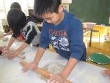 こねた生地を均等に伸ばす作業では、苦戦しましたがなんとか出来ました。伸ばした生地を切る作業では、回数をこなすうちに上手に切ることができました。