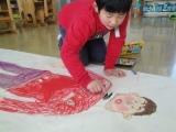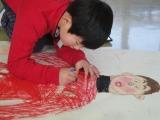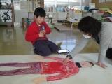 等身大の絵に色をぬるのは大変ですが、洋服の模様など細かいところまで頑張って描いています。