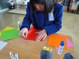 3・4年生は図工の授業で、おひなさまを制作しています。