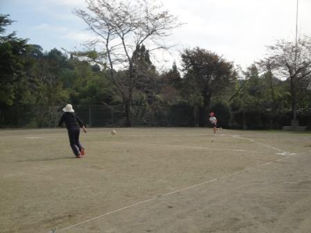 ボールを蹴って走って。守りの時もボールを取りに走り、そのままベースまで走り・・・と、かなり走りますが頑張っています!!