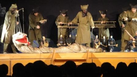 普段見ることがない糸操り人形を使った、「人形浄瑠璃」の公演でした。三味線などの演奏や歌を生で聞き、操り人形の動きを見て、終始驚きと感動の表情を浮かべる子どもたちでした。