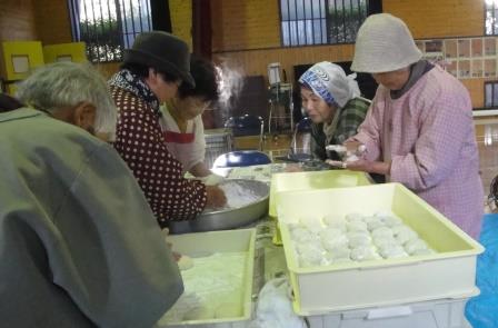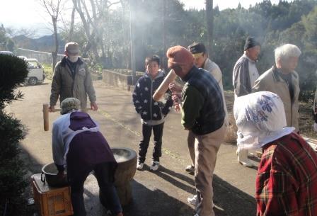 参加していただいた地区の皆様にもご協力いただき、40kgのもち米を無事つき終えることができました。