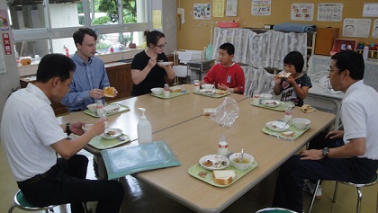 授業のあとは毎日楽しみにしている給食!!本校から校長先生も来て下さり、みんな一緒に食べました。いつも以上に賑やかな給食時間となり、児童たちは大喜びでした。