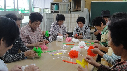 分校運動会のテントに使用する、花飾りを作って頂きました。