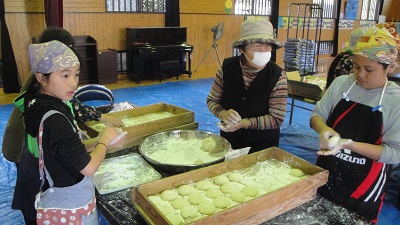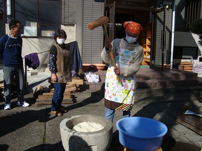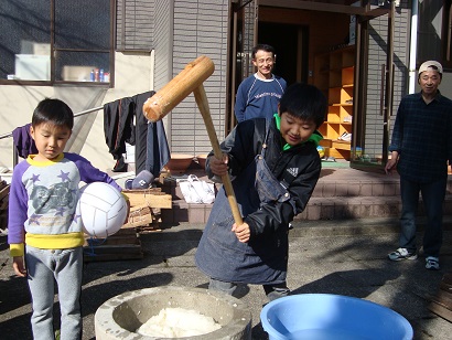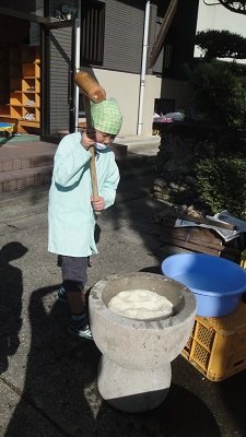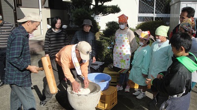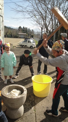 地区こども会によるきらきらサンデー「餅つき大会」があり