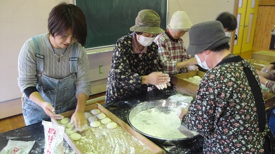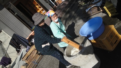 ついたお餅を丸める作業も手伝いました。これが結構むずかしいようで....笑