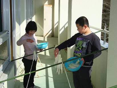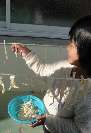 干す場所(紐など)を作ってくださったのは校長先生です♪♪♪
