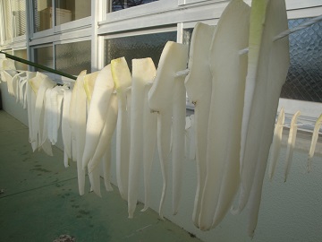 去年、学校の花壇(野菜畑)に植えていた大根を、全て掘って、切干大根作りに挑戦中です。