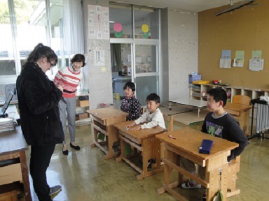 1年生にとってはもちろん初めての授業です。歌に合わせて英語での挨拶をしたり、簡単な単語を教えてもらったり、とても楽しい授業でした。