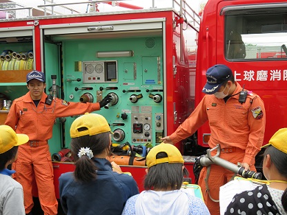 消防署内の説明・見学、そして本物の消防車や救急車の車内まで見ることができ、