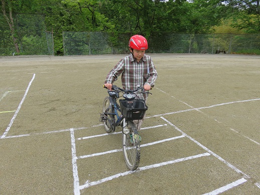 1.2年生は徒歩で、4年生は自転車を使っての実演練習です。