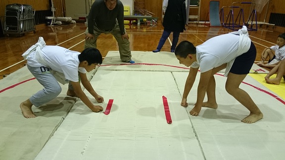 王宮神社大祭子供相撲大会を間近に控え、柳野子ども会もいよいよ相撲の練習をスタートしました。昨日(11月1日)は練習初日!初めてまわしを締める1年生、そして去年よりひと回りもふた回りも、大きく強くなった上級生の柳野の子ども達5名が集まり、準備運動をしたあと、まずは基本の一礼や、土俵に入ったときの一連の動作等を練習しました。次に、色んな人を相手に対戦練習をしました。やはり6年生は強い!でも分校生も上級生に力いっぱいむかっていく様子が見られました。
