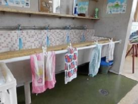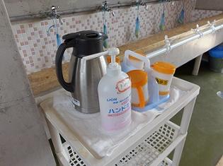 「個人用水道で手を洗う」(一人だけが使える専用の水道を決めました)