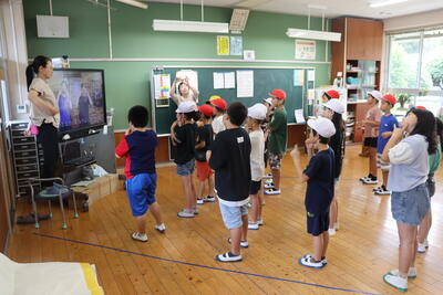 本日(9月25日)本校3年生と一緒にくま支援学校の子どもたちとオンラインで交流を行いました。