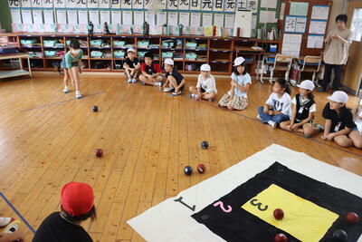 予定では、くま支援学校へ行き一緒に「ポッチャ」をする予定でしたが、感染症対策として今回の形態になりました。