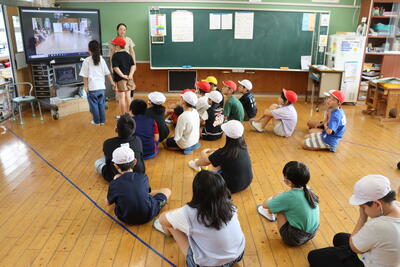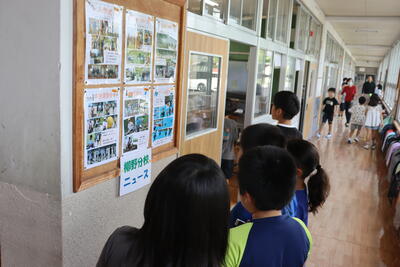 設置と同時に、すぐにたくさんの児童が集まって来て、興味津々に見ていました。これからも分校の様子を本校の児童に伝えていきたいです♪