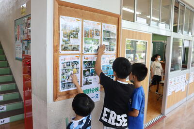 1学期の「柳野サミット」で出されたアイデアを元に、さっそく本校に分校紹介用の掲示板を設置してもらいました。