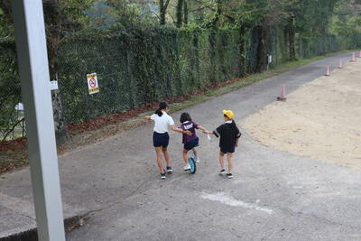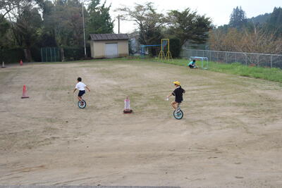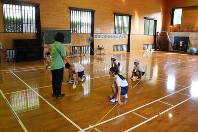 1年生は、4年生と3年生の姉妹が両脇を持って補助で練習をしました!