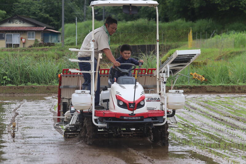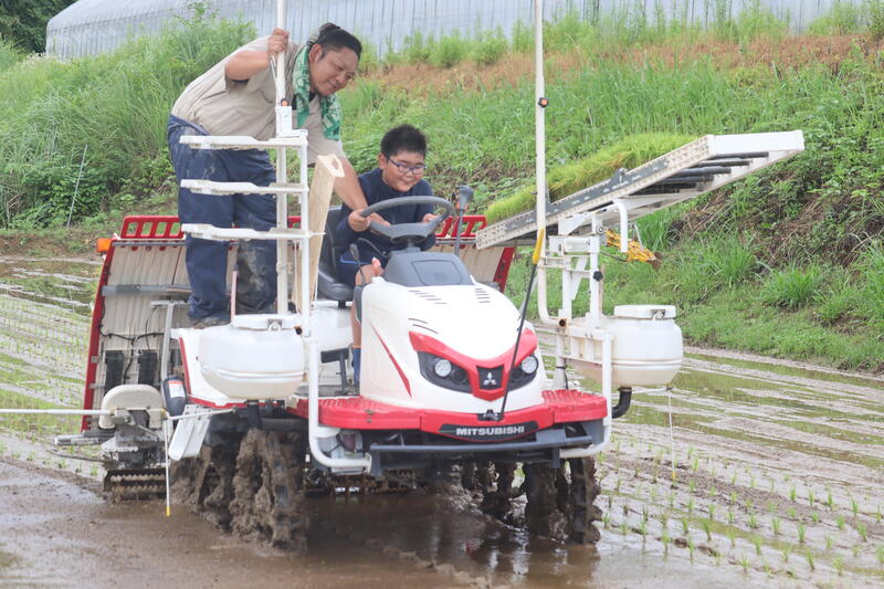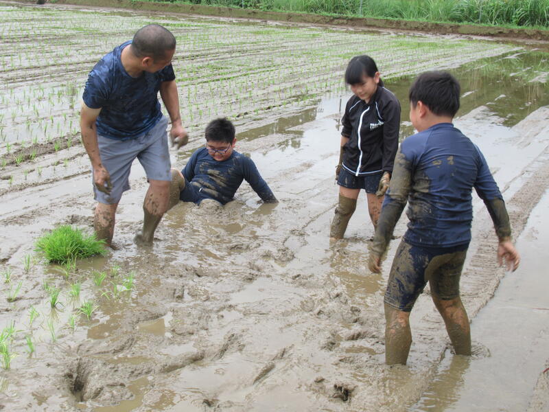 6月24日(火)に田植えをしました。雨が降っていたのですが、田植えの時は雨がやみ、充実した活動ができました。保護者の方に手伝ってもらいながら、子ども達はどろんこになって頑張りました。田植え機も一人ずつ運転させていただきました。ありがとうございました!