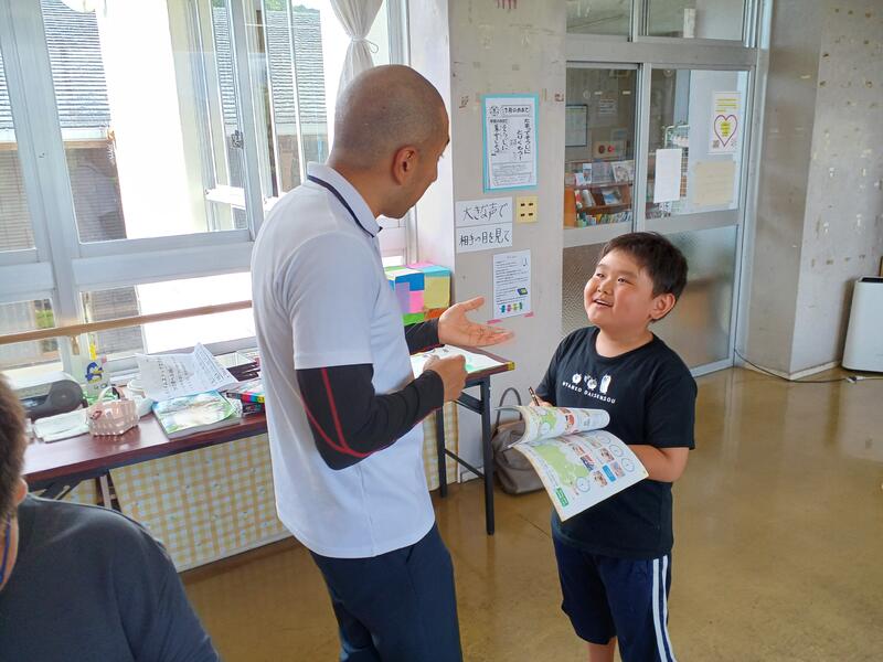 9日(火)の外国語活動の学習でお気に入りの時刻を伝え合いました。「I like 7 p.m.」「Why?」「It's dinner time. I like curry udon.」のように自分のことを伝え、相手の話も聞き、コミュニケーションを楽しみました。初めは自信を持って言えなかったのですが、練習を積み重ねるごとに上手になり、堂々と自分の考えをアイコンタクトをしながら伝えることができました。分校の先生方にもしっかり伝えることができました!