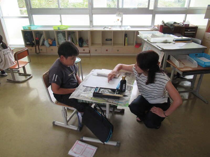 19日(木)に社会人講師の瀧森先生に書写の指導をしていただきました。10月に書写展が行われます。今回は、それに向けた作品を書きました。子ども達は、教えていただいたことを素直に受け止め意識して書こうとする姿がとても素晴らしかったです。次回は10月の下旬に来ていただきます。瀧森先生、次回もよろしくお願いします。