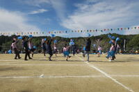 11月24日(日)に創立100周年記念運動会がありました。地域の方はもちろん、町長様をはじめ、たくさんの来賓の方に来ていただき花を添えていただきました。また、本校からもたくさんの子ども達が参加してくれて運動会を盛り上げてくれました。今年は、全来場者参加の競技をつくってプログラムを工夫したため、会場が一体となって盛り上がることができました。