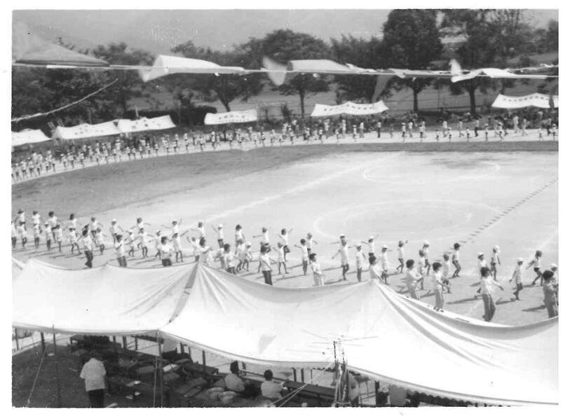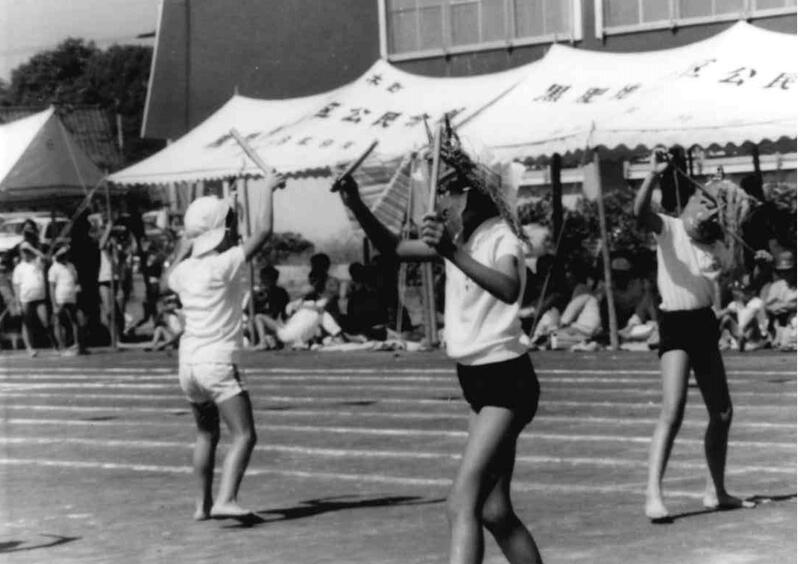 運動会の様子です。子どもの数が多いです!体育服に時代を感じます…